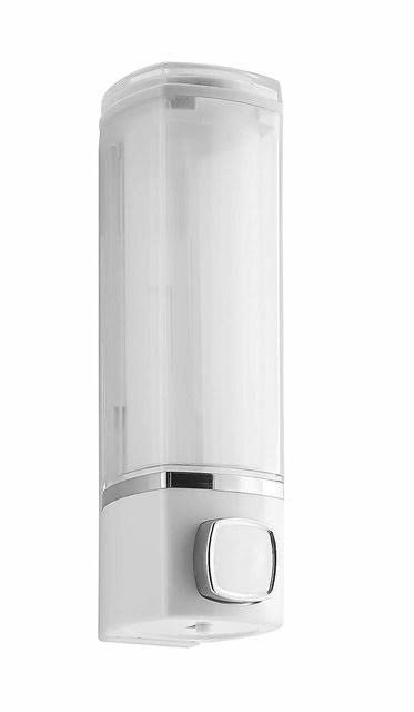 LIQUID SOAP DISPENSAR SISSY MANUAL TYPE FRONT SIDE PUSH BUTTON AND THE LIQUID WILL COME UP MATERIAL ABS COLOUR WHITE & FROSTED